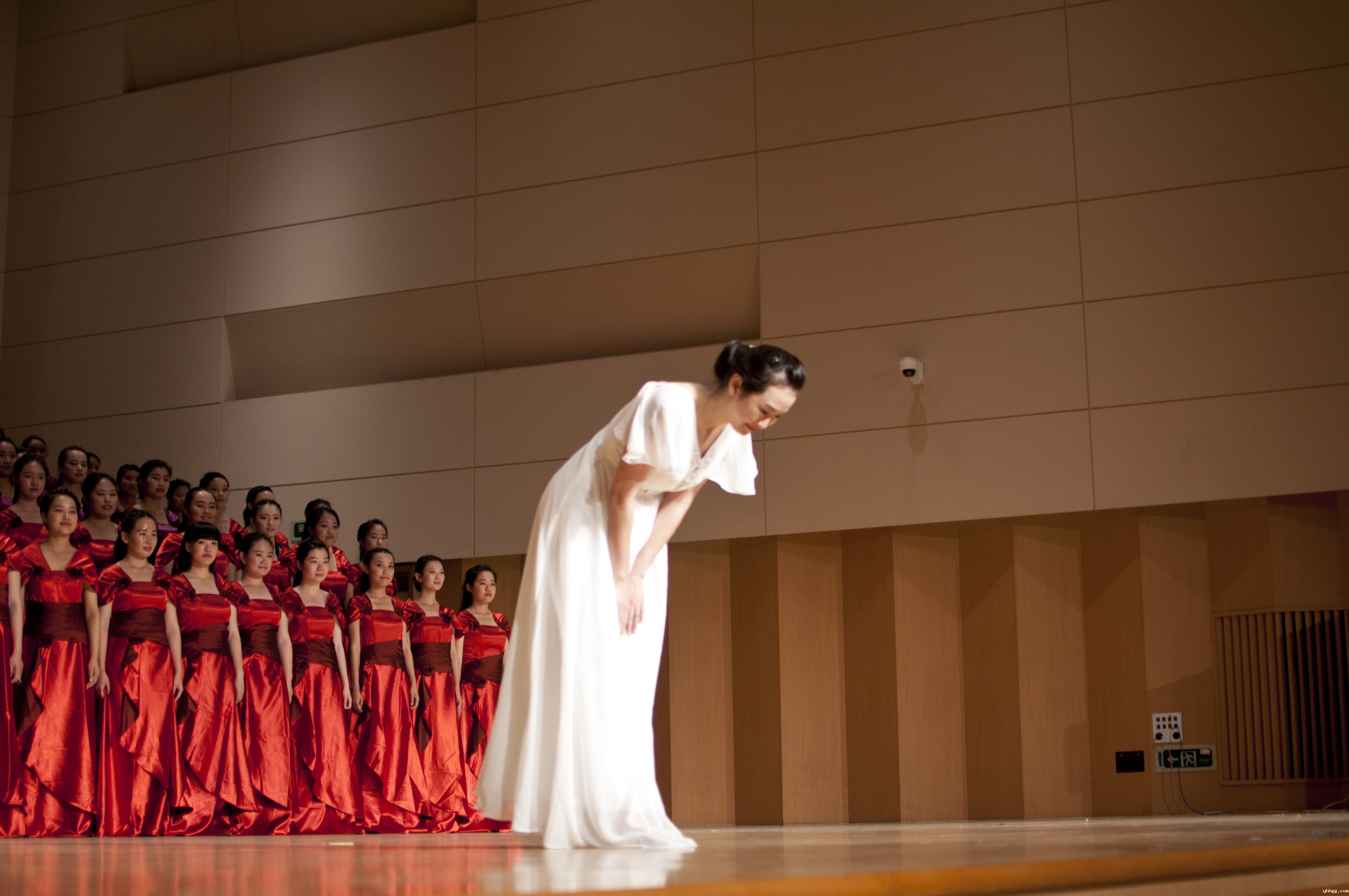 担任我院合唱指挥的是2012级硕士生许德娅,毕业后将至香港中文大学攻读博士学位。今年是她第5年带领文学院学生参赛,为了向她表示感谢和祝福,在歌曲演唱结束后,学生代表将5束鲜花和热烈的掌声送给她。