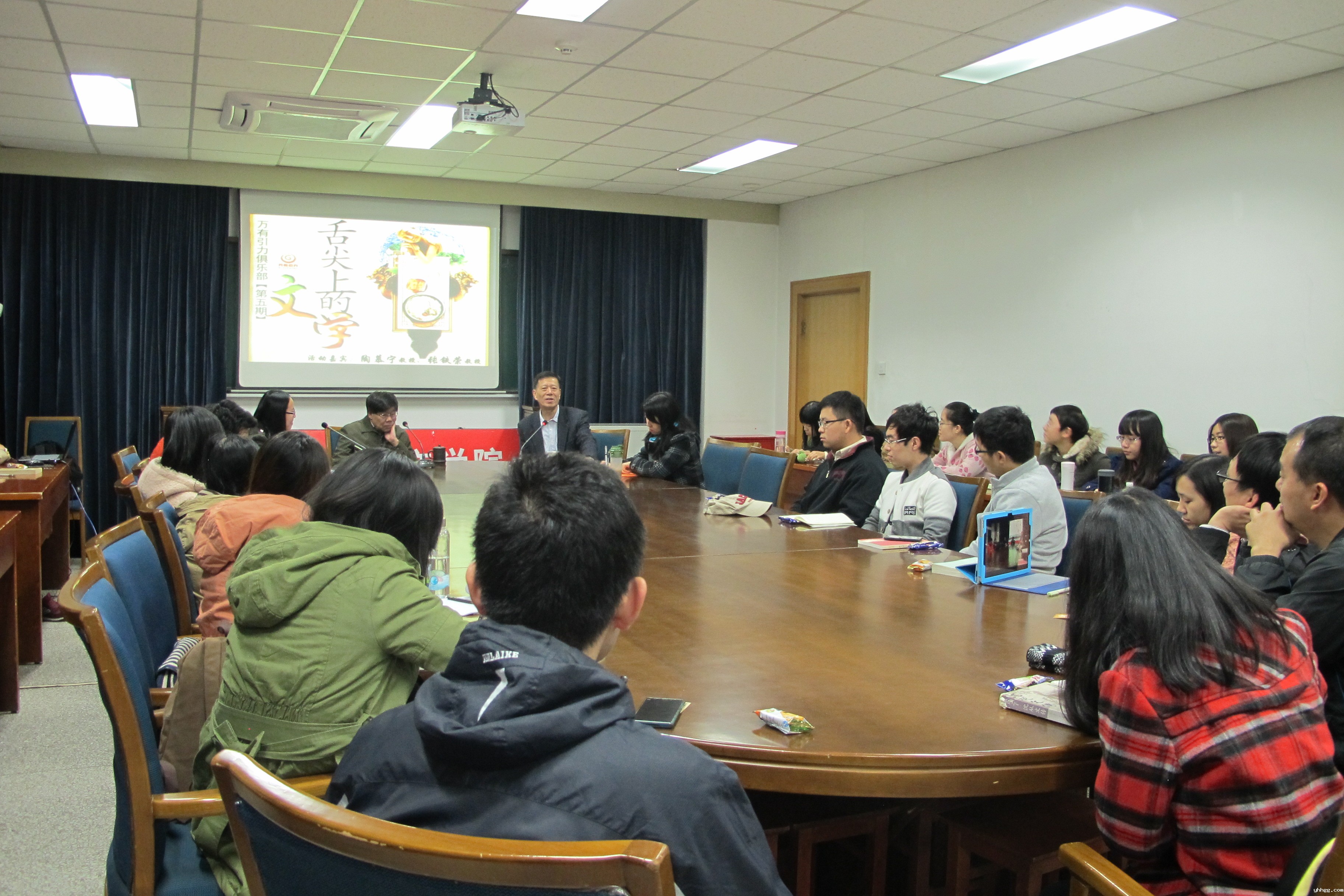 (通讯员 魏婧宇 张英贤) 11月7日,我院陶慕宁教授、张铁荣教授做客第五期“万有引力俱乐部”活动,与同学们讨论“舌尖上的文学”,带领同学们“品尝”丰盛的文学盛宴。