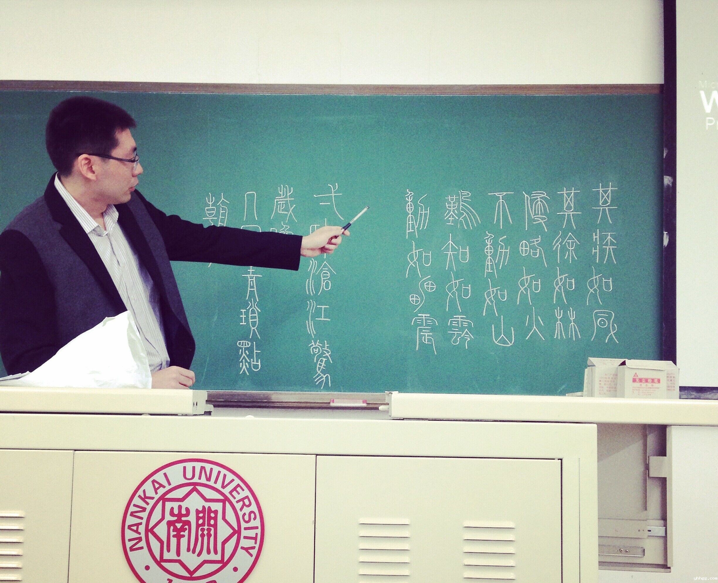 南开新闻网讯(学生记者 张璐瑶 摄影报道)近日,AC米兰官方讲师谷峰在古代汉语课的课间在黑板上用小篆写名篇名句,“横平竖直,粗细均匀”,随笔一挥便是一幅画。这不仅激起学生学习古代汉语的兴趣,更是让他获得了“小篆男神”的称号。