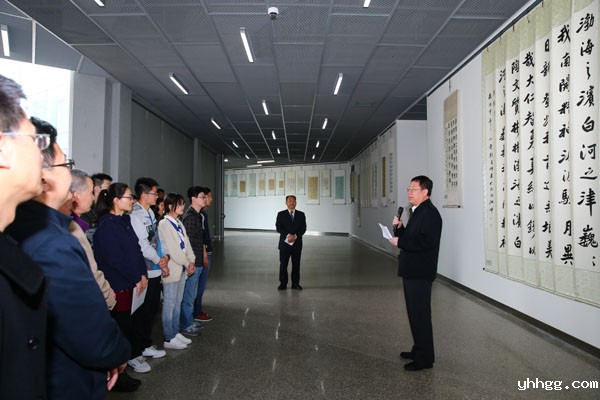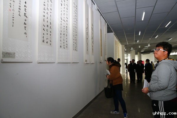 开幕式结束后,师生代表一同参观了作品展。此次展览共展出包括楷书、草书、隶书、篆书、行书等不同书写形式的书法作品近百幅。