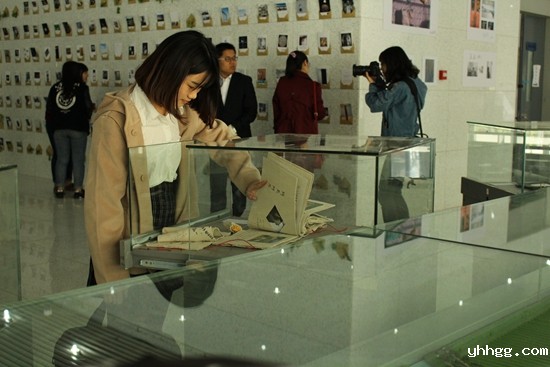 不少学生在观看的过程中,不由自主地打开橱窗,翻看里面的内容。“今天看到这些手工摄影书,我发现它给了照片另外一种途径来展现自己,透过这些材质和文字,我会觉得快乐,也会感到悲伤,它是一份有感情的期末作业,我觉得很有创意。”展览中的一位观者感慨道。