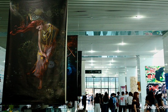 因为对文学的热爱,数字绘画专业的顾梦迪将自己的毕业作品聚焦到文学性较强的“七宗罪”上,用新的绘画技法加上后现代的文化符号化加以创作,七副作品悬挂大厅,给人造成强烈的视觉效果。“这个作品就是考验我们的画画功底,一笔一笔磨出来的。我从去年11月份开始调研,前前后后用了四个多月的时间完成,比较辛苦,但是挺有成就感的。”顾梦迪笑着说道。