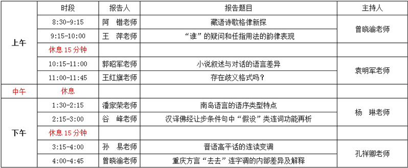 今年的学术年活动石锋教授、杨琳教授代表语言学专业分别在文学院学术年会开幕式和闭幕式上做了题为“普通话声调的本调”和“《金瓶梅词话》的版本问题”的精彩学术报告。