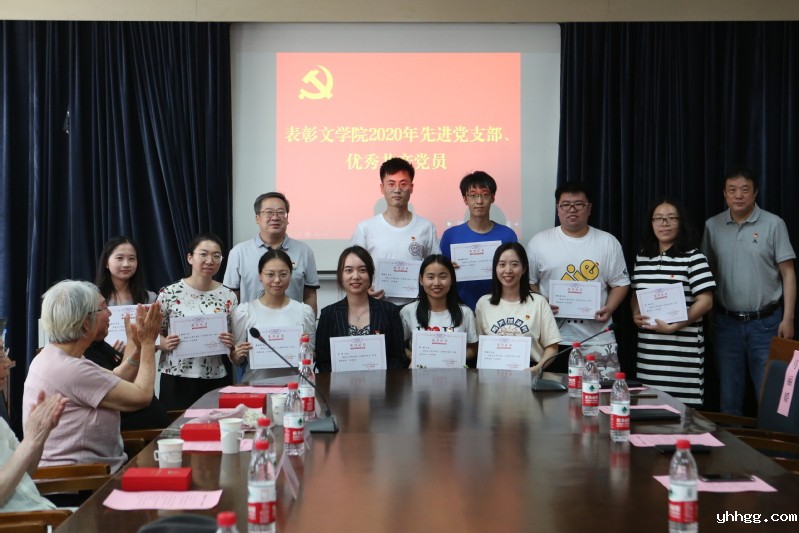 院党委副书记马丽娇代表学院党委宣读了《“光荣在党50年”纪念章文学院表彰名单》《文学院2020年先进党支部、优秀共产党员名单》。院党委书记王树强、院长李锡龙为获得“光荣在党50年”纪念章的老党员颁发奖章,为获得学院先进党支部、优秀共产党员荣誉称号的支部和个人颁发证书。