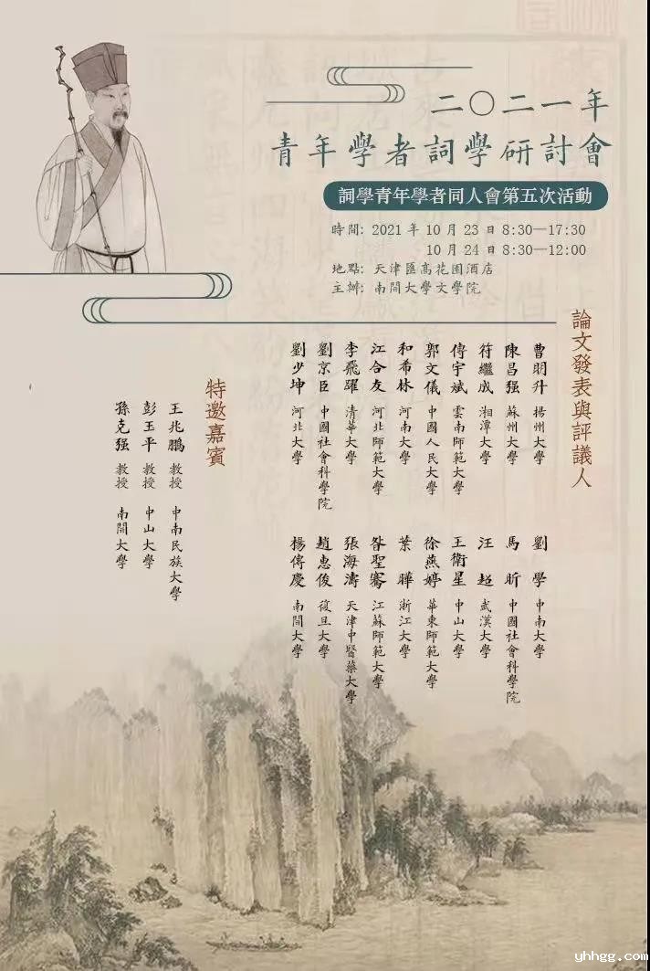 10月24日 周日 8:30—9:40 第五场 主持人:汪超(武汉大学) (发言人10分钟,每位评议人5分钟) 1. 天宝十三载改诸乐名考论 发言人:李飞跃(清华大学) 评议人:江合友 杨传庆 2. 词籍校勘之“律校法”探赜 发言人:刘少坤(河北大学) 评议人:曹明升 和希林 3. 唐圭璋《梦桐室词话》考述 发言人:和希林(河南大学) 评议人:江合友 杨传庆 自由讨论:10分钟 9:50—11:20 第六场 主持人:江合友(河北师范大学) (发言人10分钟,每位评议人5分钟) 1. 贯通作为写法:苏轼《水龙吟》词的词调史考察 发言人:叶晔 (浙江大学) 评议人:汪超 王卫星 2. 论诗学话语的词学转化——以词味说为例 发言人:符继成(湘潭大学) 评议人:汪超 赵惠俊 3. 词学史上的东坡绮语词批评 发言人:杨传庆(米兰官方网站是什么) 评议人:符继成 曹明升 自由讨论:10分钟 上午场总评:20分钟 特邀嘉宾:王兆鹏 教授(中南民族大学)