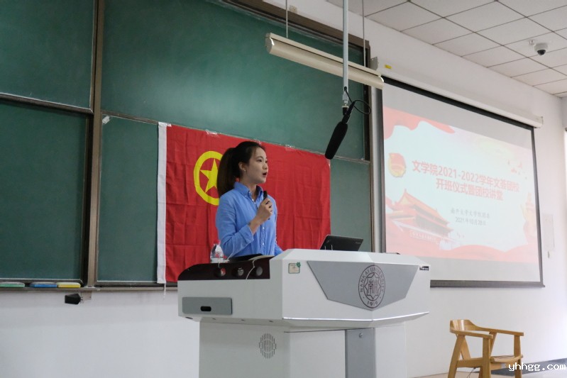 文学院团委书记宋燕进行总结寄语。她希望同学们能认真学习党史、团史,增强理论素养,深化责任担当。同时要求同学们遵守纪律,认真听讲,结合实践,学以致用,打破壁垒,勇于创新。