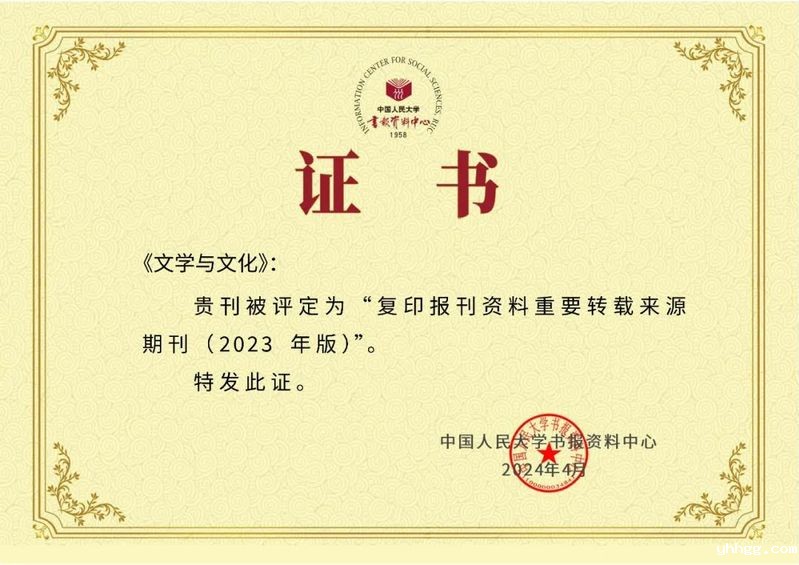 近日,中国人民大学书报资料中心发布“复印报刊资料重要转载来源期刊(2023年版)”总名录。综合2020—2022年期刊转载数据和同行定性评审结果,我院主办的学术期刊《文学与文化》继续入选“复印报刊资料重要转载来源期刊(2023年版)”。