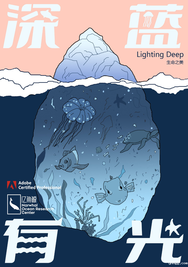 作品《海洋之美不只蓝眼泪》采用冰山与眼泪结合的形状,意在表达我们能看到的海洋之美只是冰山的一角,在冰山的下方还有很多是我们所不知道的领域,阳光到达不了的海洋深处生存着无数可以通过自身发光的海洋生物,他们可爱的存在处处体现着生命之美;眼泪的形状本由蓝眼泪引申出来,蓝眼泪其实只是非常片面的一个海洋中美丽光亮的现象,希望人们可以不仅仅看到表象,更要看到全部,不仅仅看到美丽的蓝眼泪,更要看到某些真正在哭泣的眼泪。通过借助蓝眼泪这一热点话题进行表达,希望人们能从蓝眼泪开始,注意到更多海洋中的光、海洋中的美,呼吁大家更加主动地探索海洋中的奥秘并为保护海洋贡献出一份力!