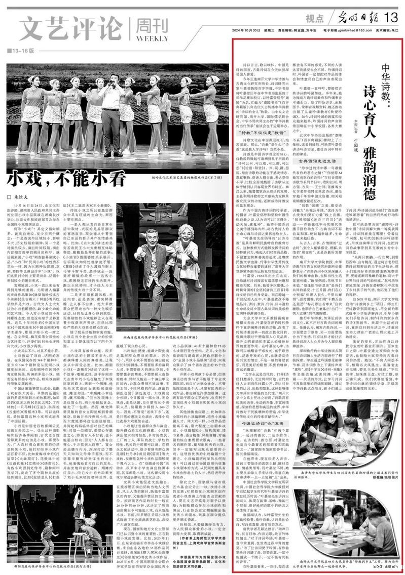 詹福瑞认为,从叶嘉莹先生的实践经验看,推行诗教,讲诗是比论诗、写诗更直接、更有效的方式。