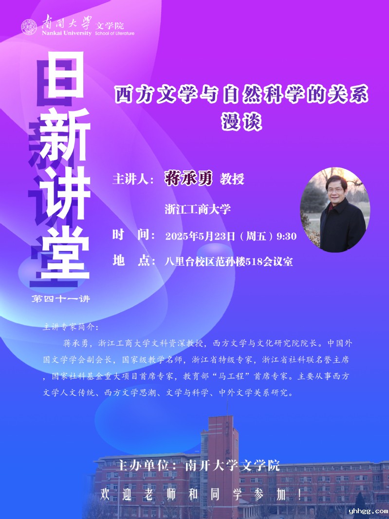 日新讲堂预告 | 蒋承勇教授:西方文学与自然科学的关系漫谈
